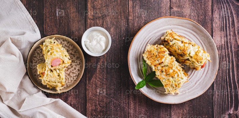 Голубцы с сосисками на тарелке на столешнице веб-баннер