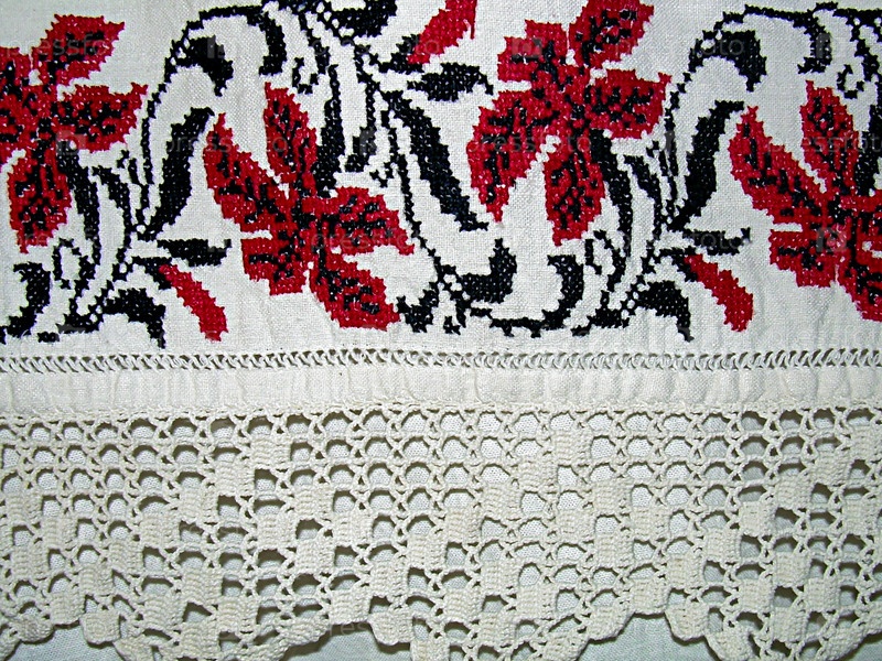 Старинный вышитый рушник с самовязанным кружевом