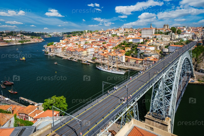 Вид на город Порту, Португалия, на закате