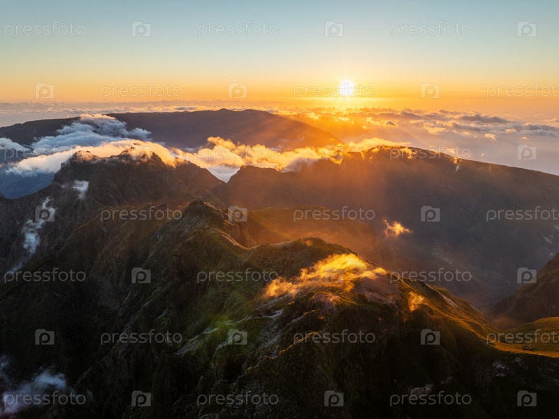 Вид с воздуха на горы возле Пико Руиву, Мадейра, Португалия