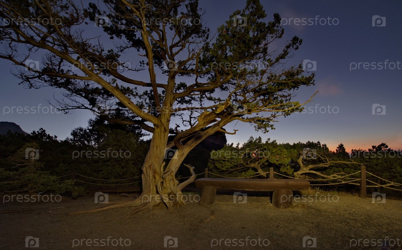 Россия, Новый Свет, Крым. Потрясающий предрассветный вид с мыса Капчик на реликтовые деревья можжевельника