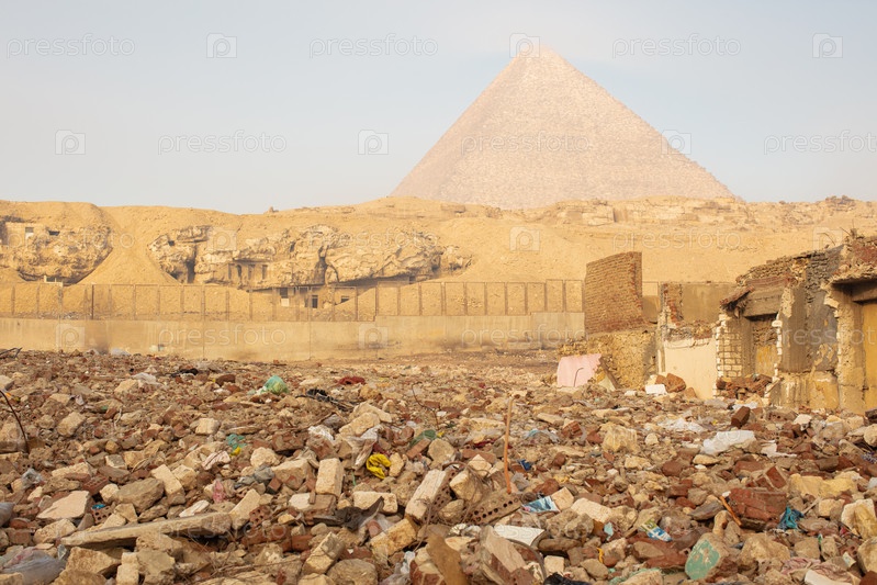 Вид со стороны трущоб на египетские пирамиды в Гизе