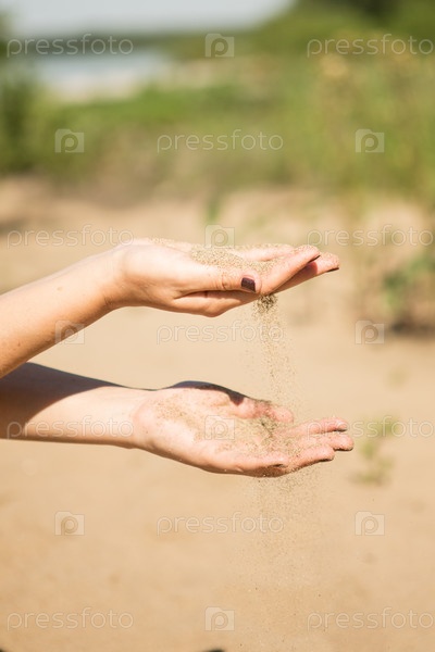 Песок, текущий сквозь руки женщины