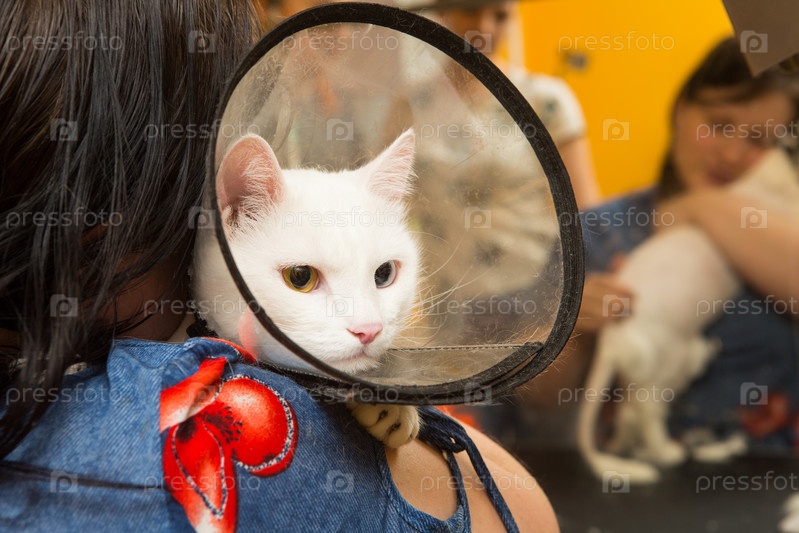 Красивая кошка в салоне красоты. Стрижка животных, мытье купающейся кошки, расчесывание шерсти, сушка феном. Мастер по грумингу, уход за кошкой
