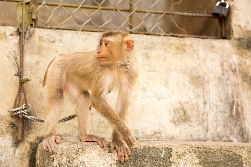 Обезьяна на цепи в зоопарке