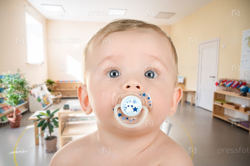 Ребенок с соской в яркой обстановке класса