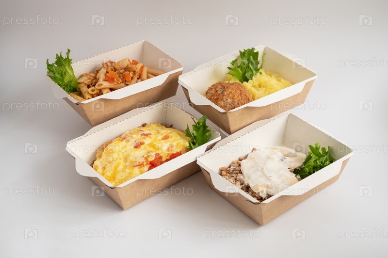 Ассортимент блюд на вынос в экологически чистых контейнерах