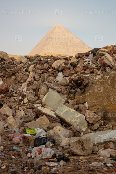 Вид со стороны трущоб на египетские пирамиды в Гизе