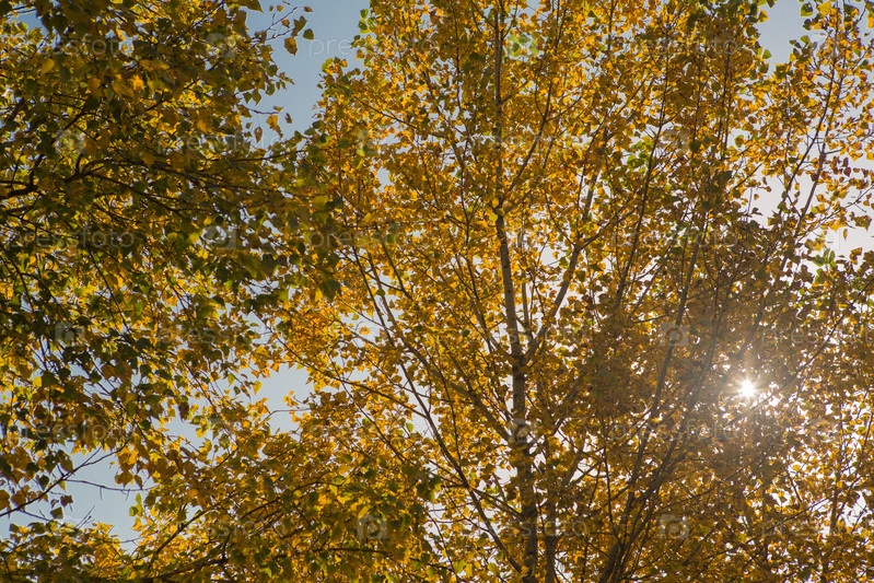 Осенний фон лес с желтыми листьями на фоне неба
