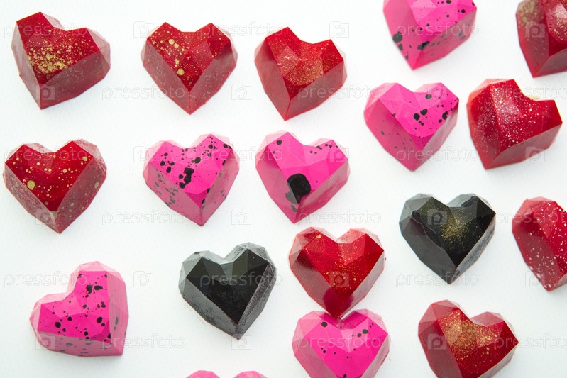 Вкусные шоколадные конфеты, крупный план, разные цвета