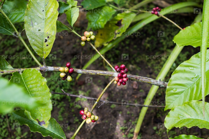 Крупный план кофейных плодов на кофейных фермах и плантациях