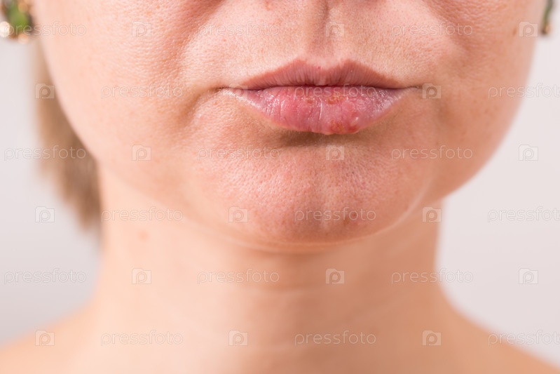 Крупный план женских губ, страдающих от герпеса