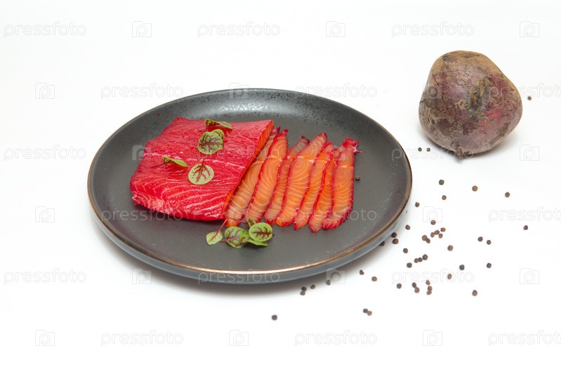 Соленая красная рыба с морской солью
