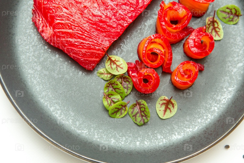 Соленая красная рыба с морской солью