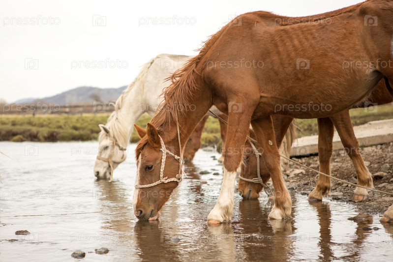 Лошадь пьет воду