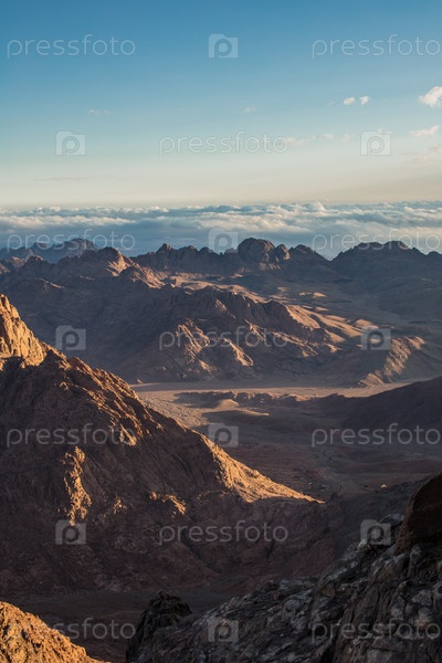 Удивительный восход солнца на горе Синай, гора Моисея с бедуинами, прекрасный вид с горы