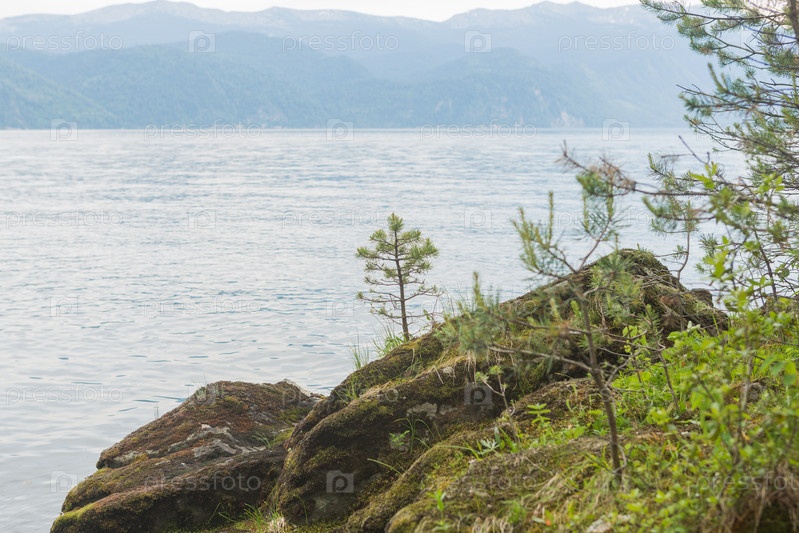 Телецкое озеро со спокойной водой в летний день. Алтайский край