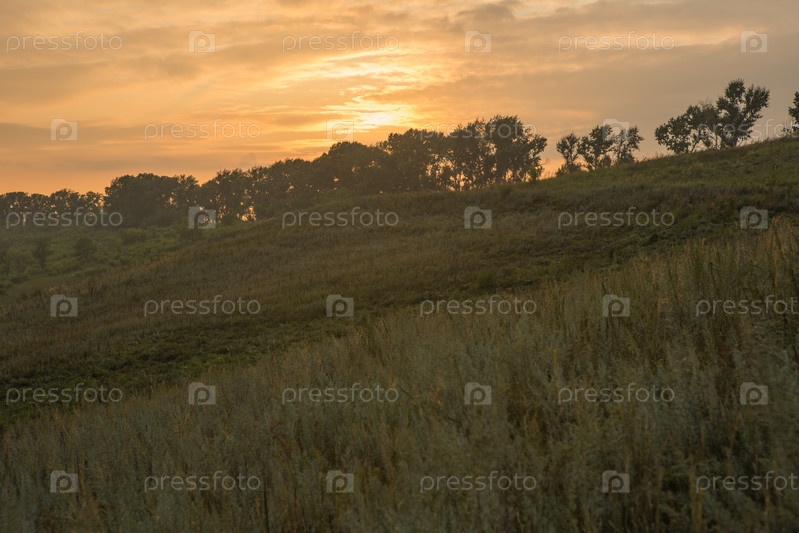 Закат или восход солнца в лесном ландшафте. Солнце, солнечный свет с естественным солнечным светом и солнечными лучами через деревья в летнем лесу. Красивый живописный вид