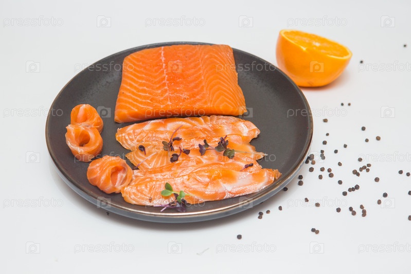 Соленая красная рыба с морской солью