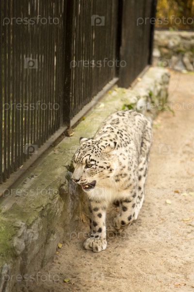 Снежный барс гуляет в клетке