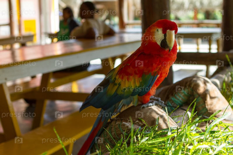 Пара прекрасных сине-желтых попугаев ара Ara ararauna, известные как голубозолотой ара, сидят вместе