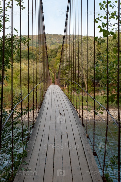 Подвесной мост, перекинутый через горную реку