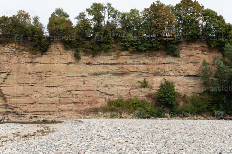 Галечный пляж горной реки, затопляемый во время весенних паводков