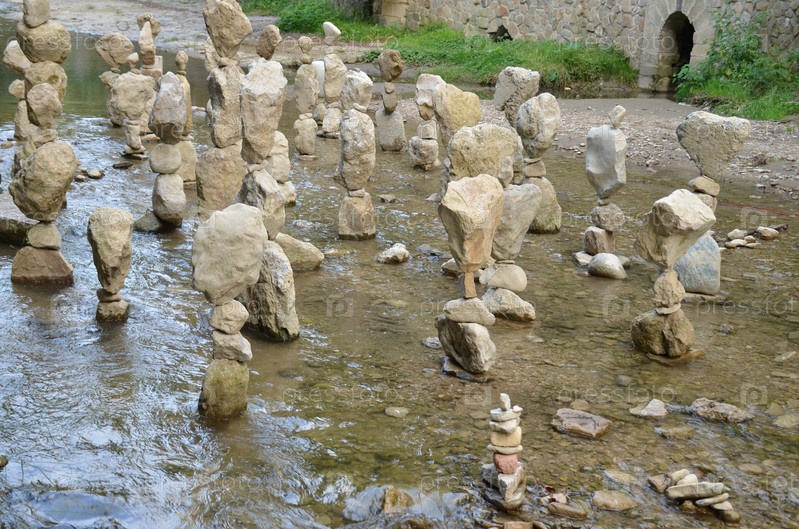 Балансирующие камни (сад камней) на реке Ольховка в курортном парке Кисловодска