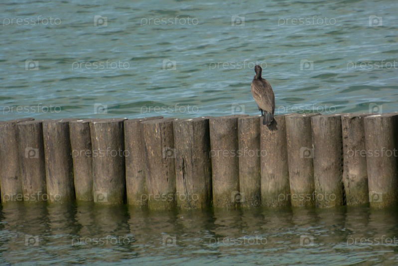 Чайки и птицы сидят над поверхностью воды
