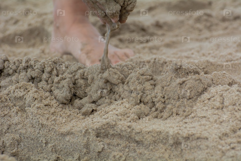 Строим замок из песка на пляже, руки
