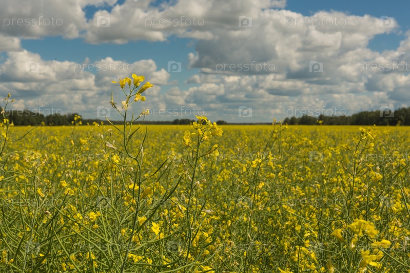 Вид на красивое поле ярко-желтого рапса