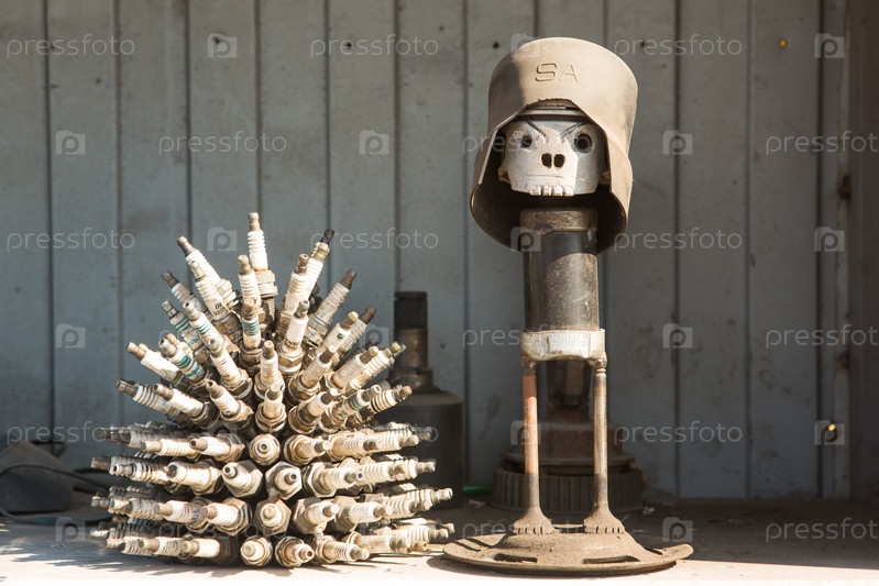 Фигура, сваренная из поршня старого автомобиля. Поршень двигателя старого подержанного автомобиля крупным планом