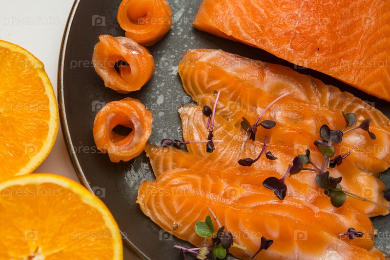 Соленая красная рыба с морской солью