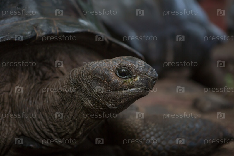Одна гигантская черепаха на Сейшельских островах, Индийский океан, Африка