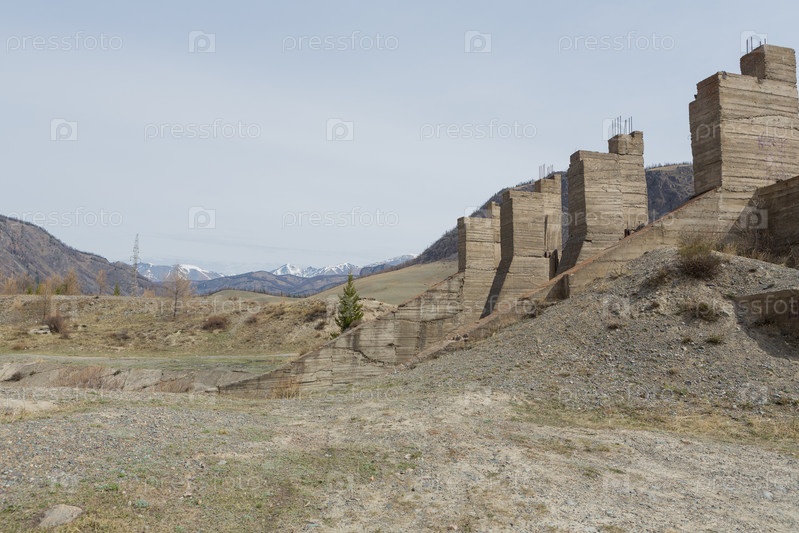 Улаганский муниципальный район, Республика Алтай, Южная Сибирь, Россия недостроенная, заброшенная Чуйская Акташская ГЭС на реке Чуй
