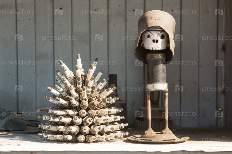 Фигура, сваренная из поршня старого автомобиля. Поршень двигателя старого подержанного автомобиля крупным планом