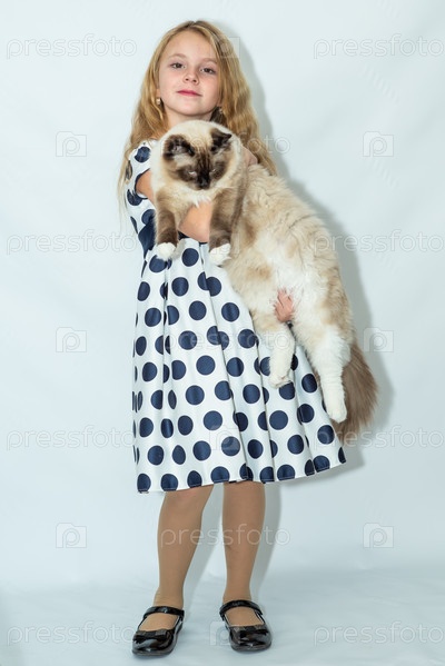 Девочка держит на руках красивую кошку. Ребенок и питомец, питомец