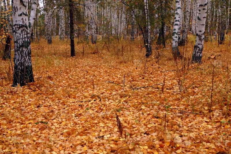 Осенний пейзаж. Листья покрыли землю в березовой роще