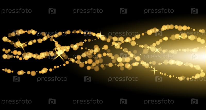 Завораживающее зрелище золотистых огней боке, кружащихся на темном фоне, создающих волшебную и праздничную атмосферу. Векторная иллюстрация