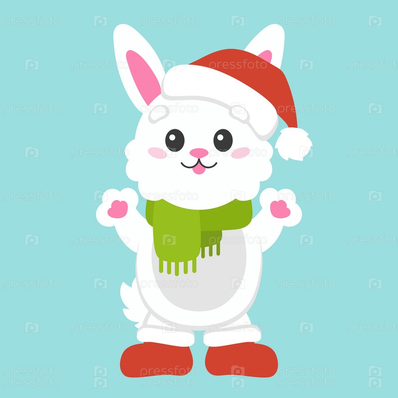Мультяшный персонаж рождественский кролик. Красочные векторные иллюстрации. Изолированный на цветном фоне. Элемент дизайна. Шаблон для вашего дизайна, книги, наклейки, открытки