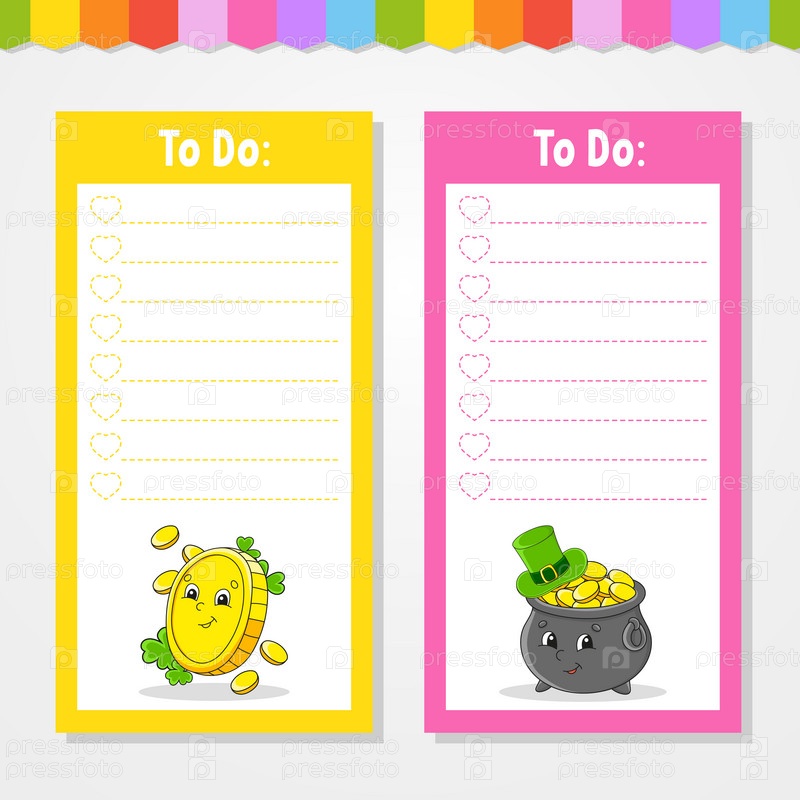 Список дел для детей. Пустой шаблон. Прямоугольная форма. Забавный персонаж. Мультяшный стиль. Для дневника, блокнота, закладки. Векторная иллюстрация