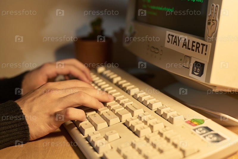 Написывание на компьютерной клавиатуре с помощью монитора со вклеенными ярлыками