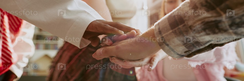 Межрасовая пара держит друг друга за руки в солнечной комнате