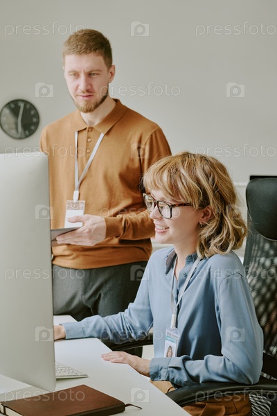 Молодые специалисты, совместно работающие в современном офисе