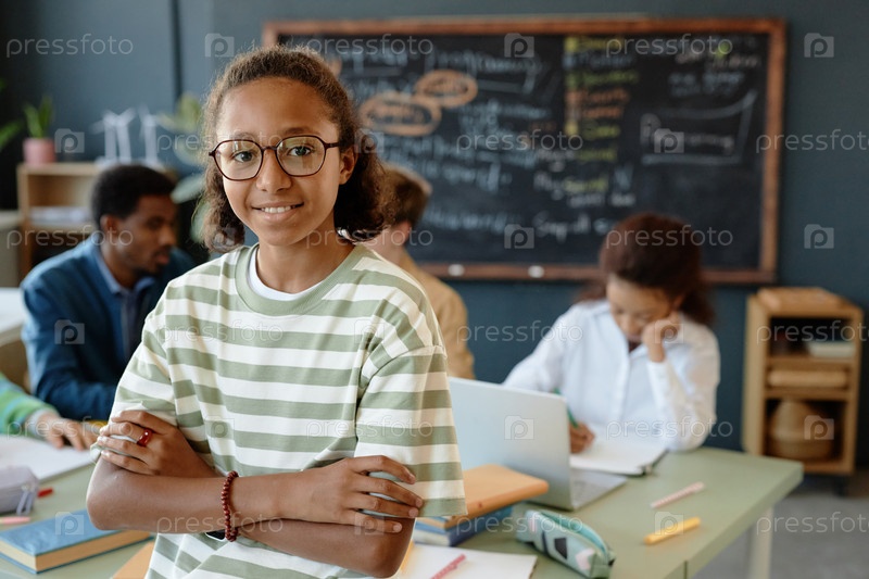 Портрет чернокожей девочки-подростка в школе