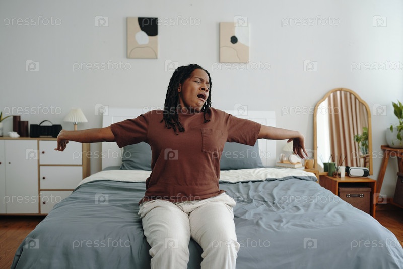 Женщина, сидящая на кровати в спальне