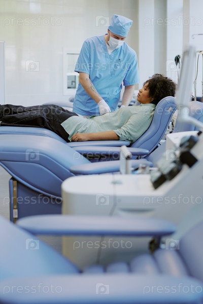 Медсестра, лечащая пациента в современном медицинском учреждении