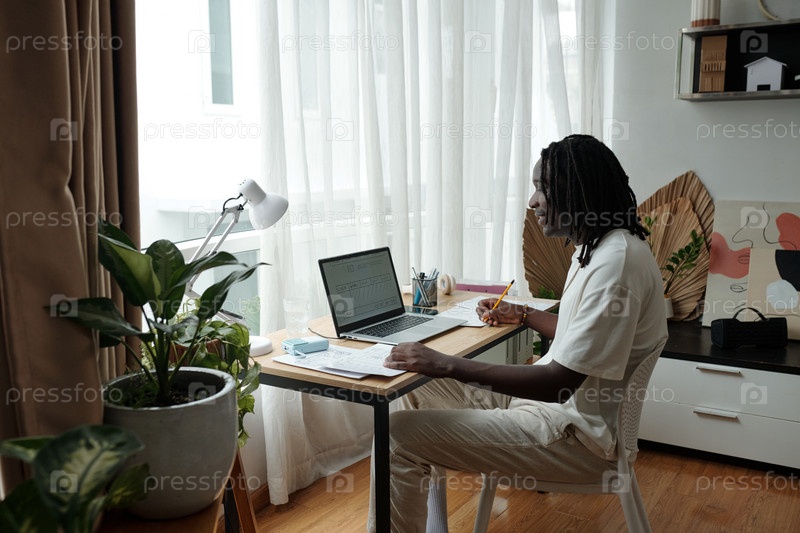 Человек, печатающий на ноутбуке в современной домашней офисной обстановке