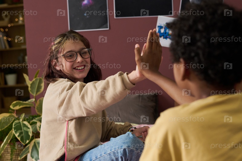 Празднование достижений с высокой пятой в помещении