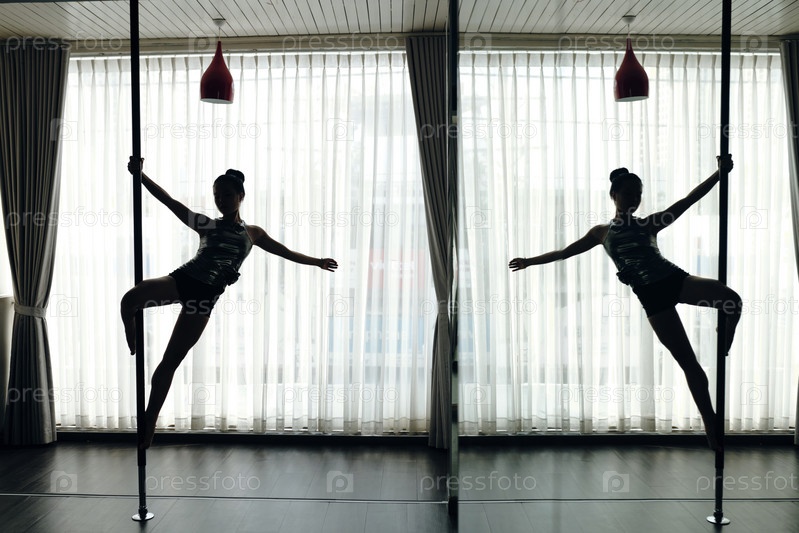 Элегантная танцовщица полюса, выполняющая сложную рутину